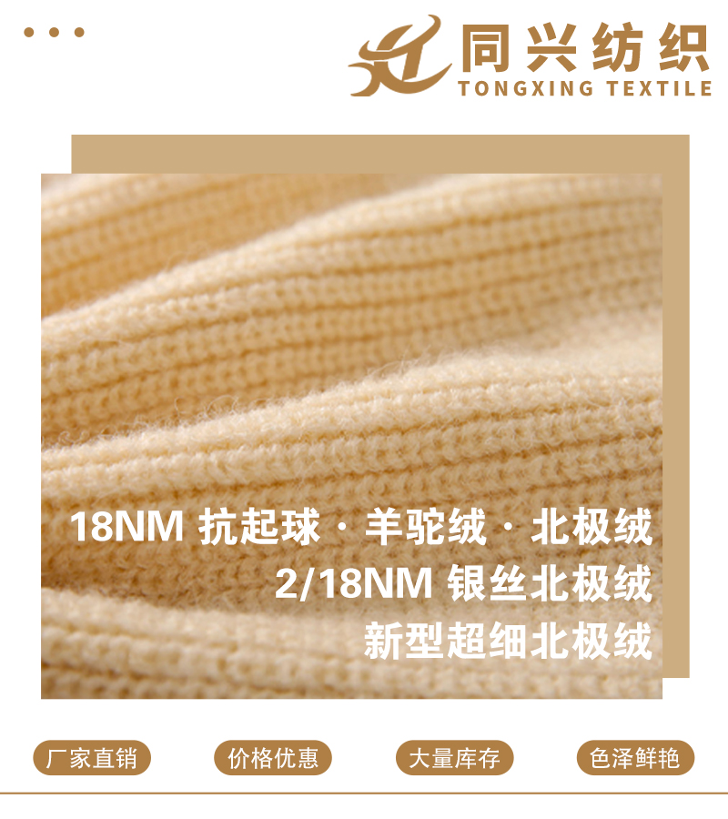 18NM抗起球羊驼绒·北极绒、2/18NM银丝北极绒、新型超细北极绒、抗起球安迪绒、1/9NM磨毛绒、9NM/1彩斑绒、16NM/1凤凰绒、21S圈圈纱、1/4.9NM園園绒、2/28NM羊纤绒纱、9NM/1超柔珠兰、1/26NM冰丝麻、1/4.8NM冰岛绒、1/13NM小可爱·毛毛绒、