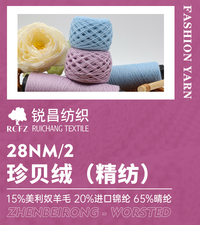 24S/2抗起球膨体羊毛、48S/2前丝光抗起球三七、30S、48S/2巴素兰五五、57S/3抗起球天丝毛晴、30S、48S/2巴素兰羊毛、30S、48S/2巴素兰三七、48S/2美丽诺(洗绒)纯羊毛、36S/2膨体真三七、48s/2丝光真三七、28NM/2 珍贝绒(精纺)。Ps