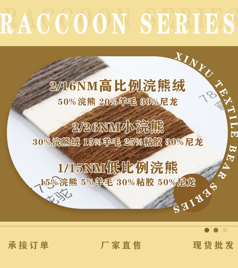 30%浣熊绒 15%羊毛 25%粘胶 30%尼龙