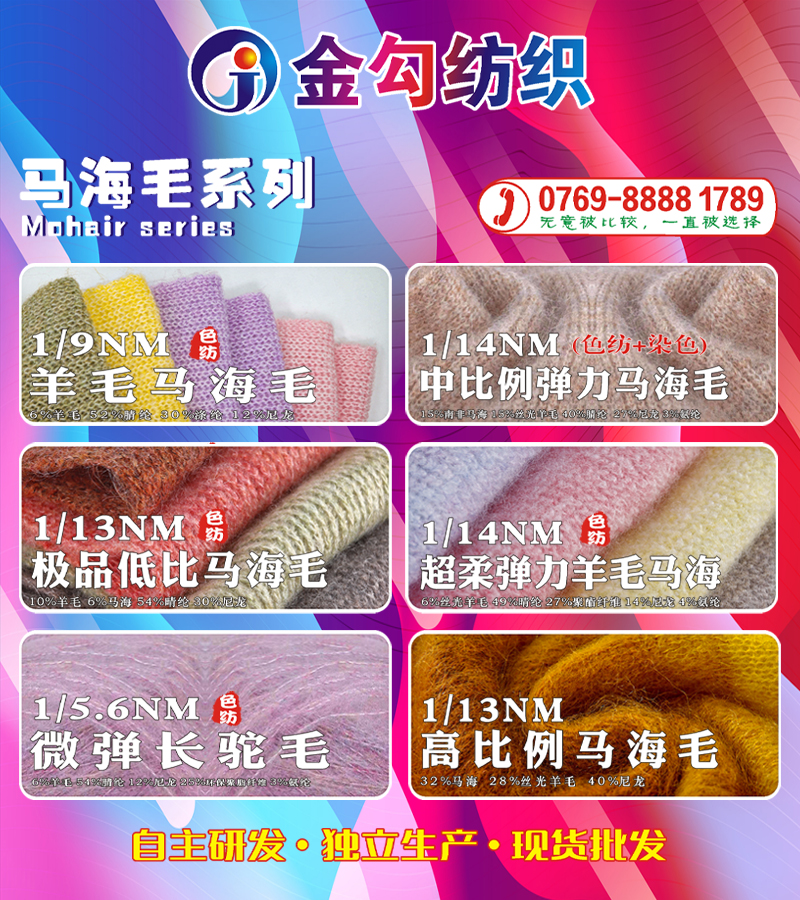 羊毛马海毛、超细马海毛、弹力马海毛、极品低比马海毛、中比例弹力马海毛、超柔弹力羊毛马海毛、高比例马海毛