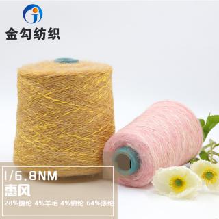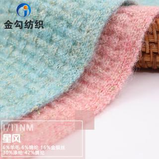 6%羊毛 6%锦纶 16%金银丝 30%涤纶 42%腈纶