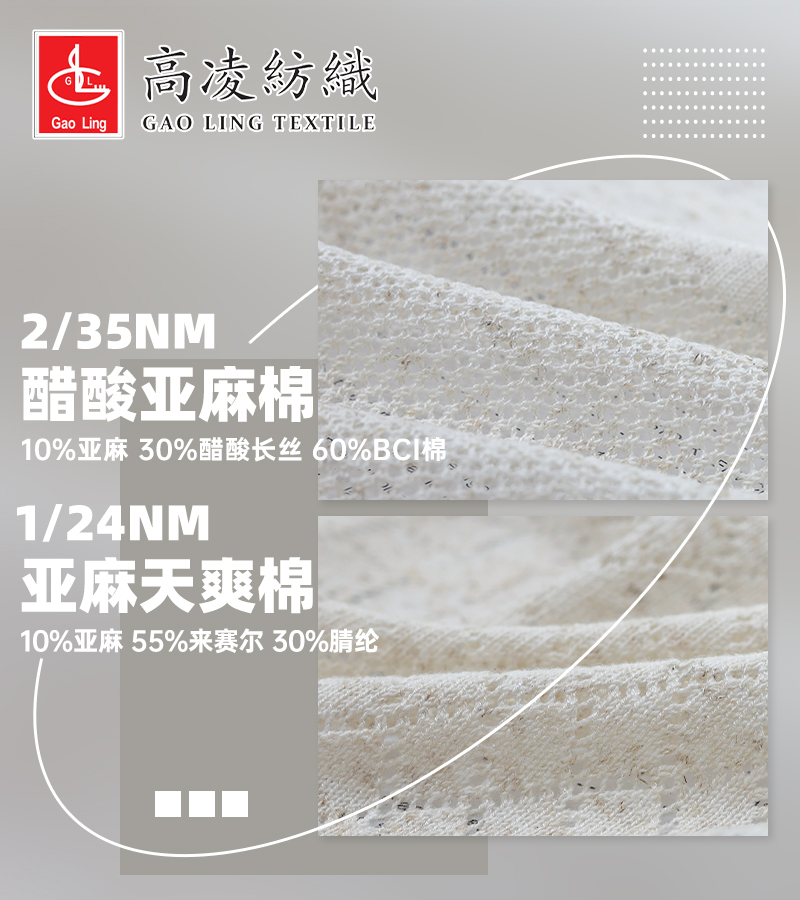 12%亚麻 10%醋酸丝 45%莱赛尔 33%腈纶