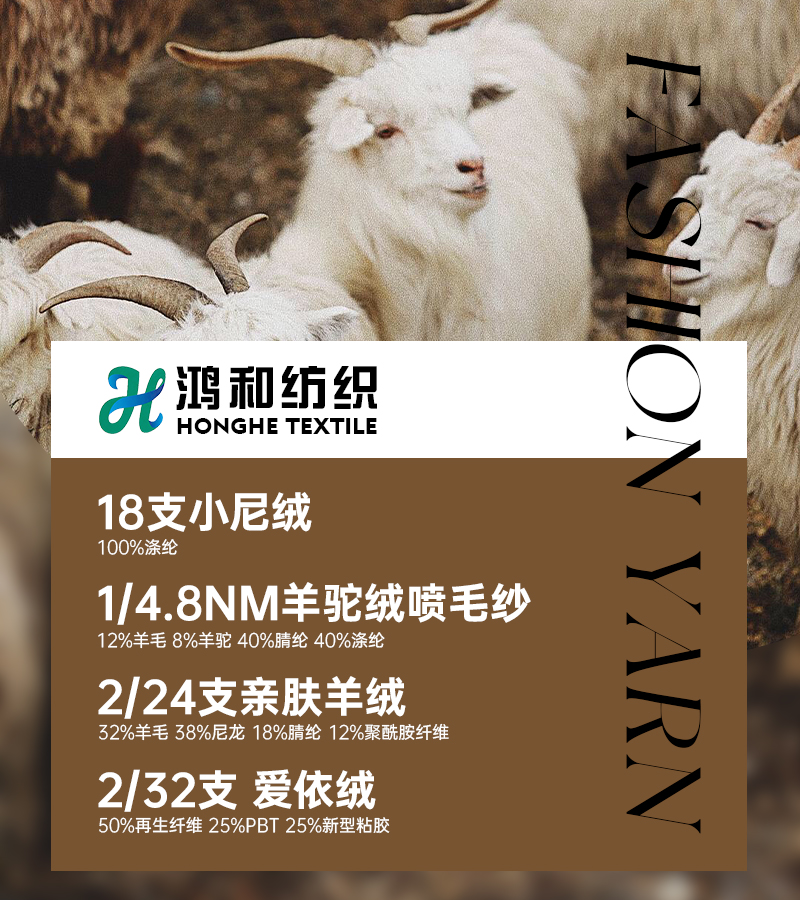 新品:春夏料3/70超爽莱塞米纳、18支小呢绒、4.8支羊驼喷毛、高捻包芯纱、极品炫彩绒、羊驼喷毛纱、雪尼尔、色纺驼绒毛、马海毛系列