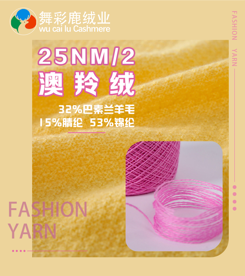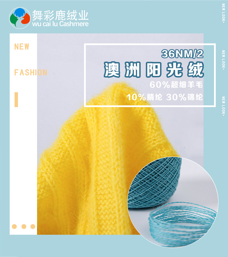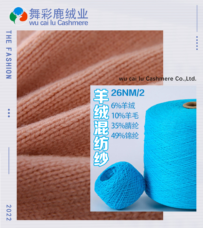 26支/2 30/70山羊绒、26支/2 10/90山羊绒、26/2走锭全羊毛、26/2藏驼绒、24/2浣熊绒A、24/2浣熊绒B、24/2小羊绒、6.5/1雪驼绒、25/2走锭羊毛绒、36/2澳洲阳光绒、25/2走锭澳羊毛、68/3春夏产品天丝羊毛