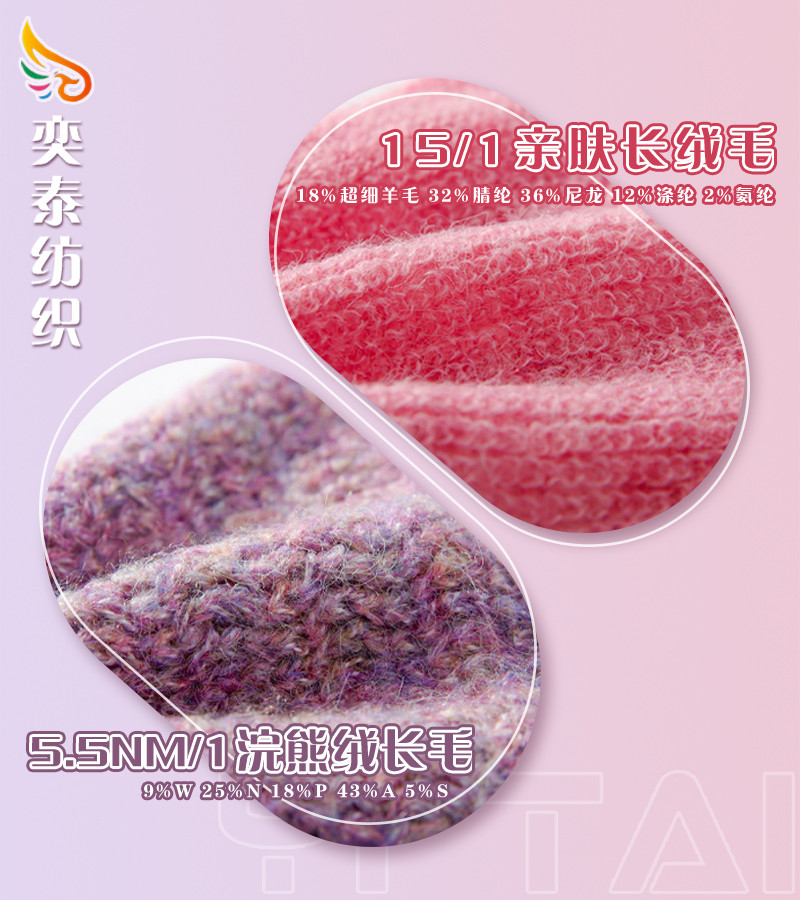 9%羊毛 33%腈纶 21%再生涤纶 35%涤纶 2%氨纶