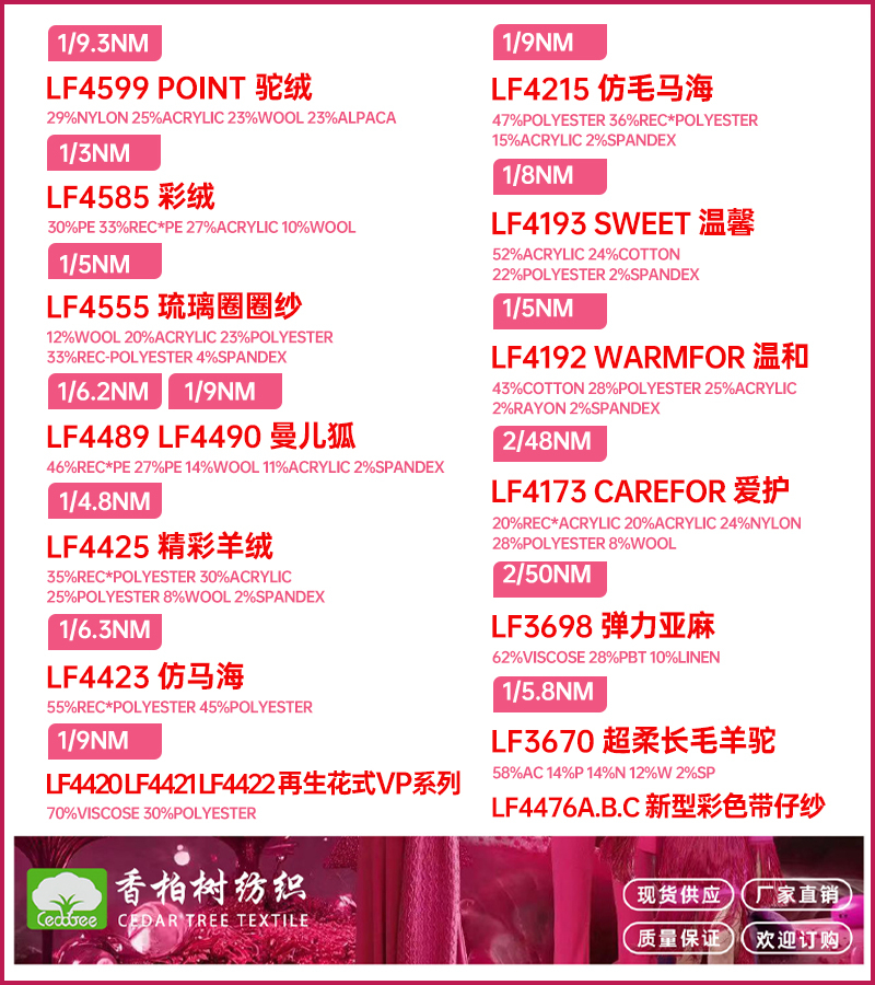35%腈纶 30%再生涤纶 25%涤纶 7%羊毛 3%氨纶