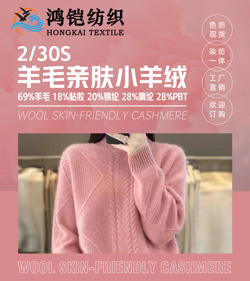 50%羊毛 20%抗起球晴纶 30%中空锦纶