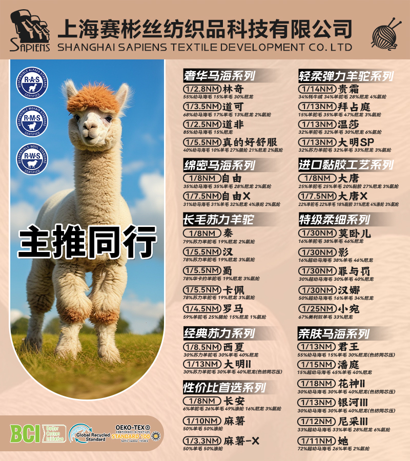 6羊驼毛ALPACA 26羊毛WOOL 48涤纶POLYESTER 16尼龙NYLON 4氨纶SPANDEX
