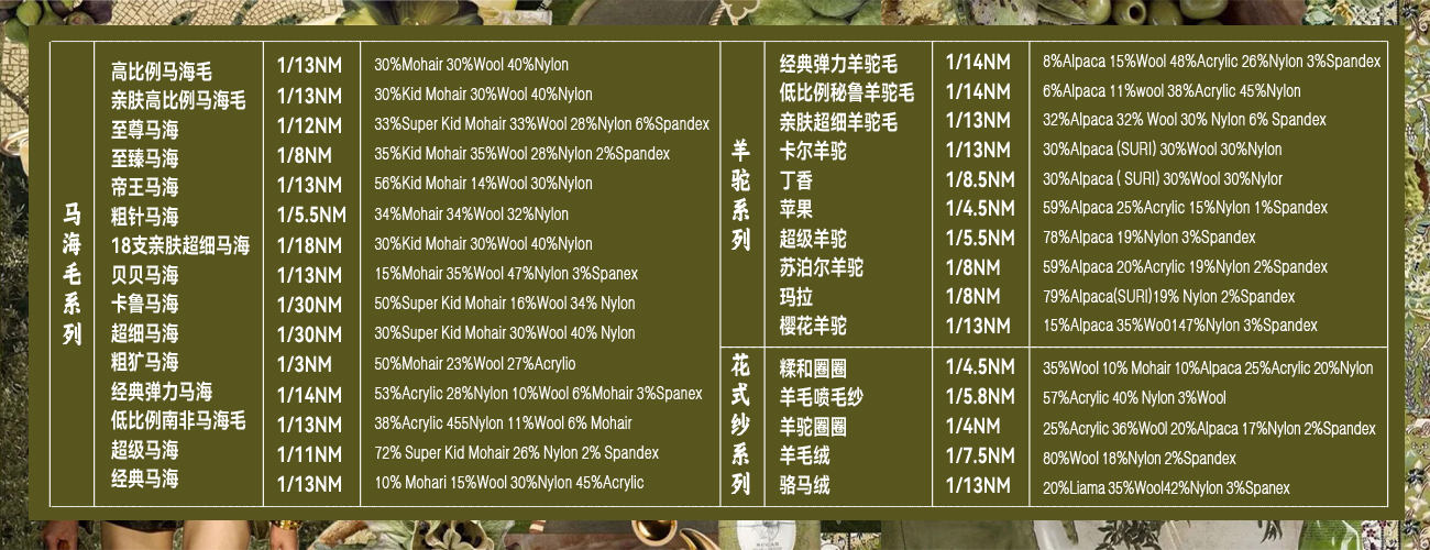 中高端马海毛羊驼毛等流行花式纱线以及定做纱线