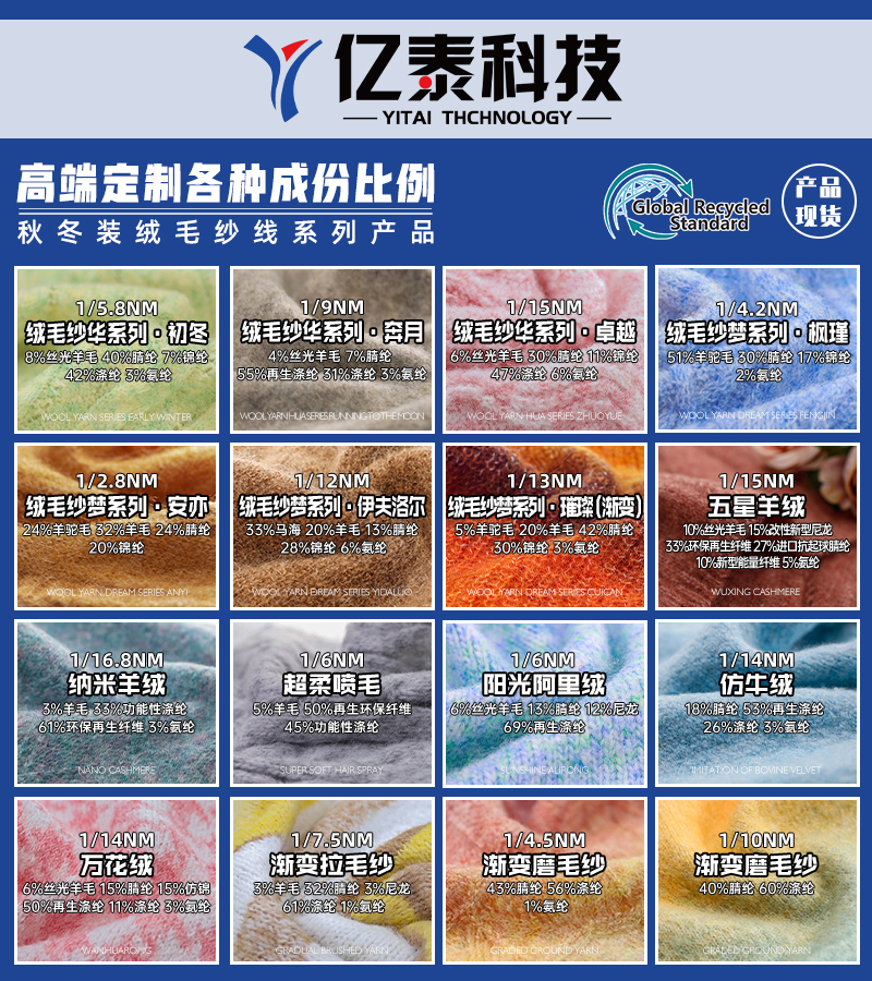 高端定制各种成份比例秋冬装绒毛纱线系列产品